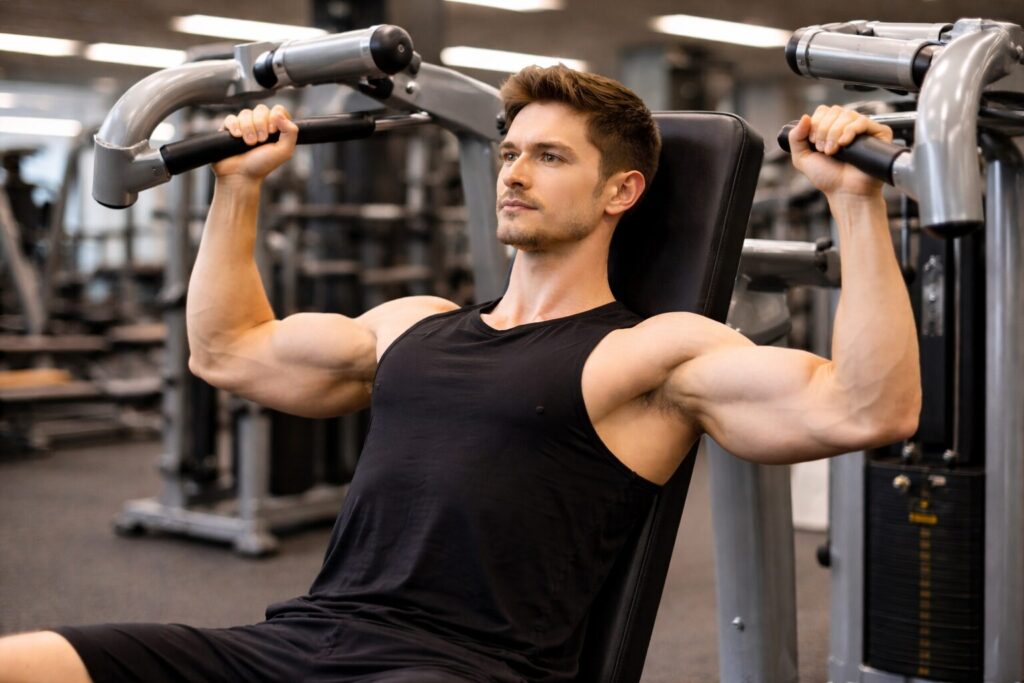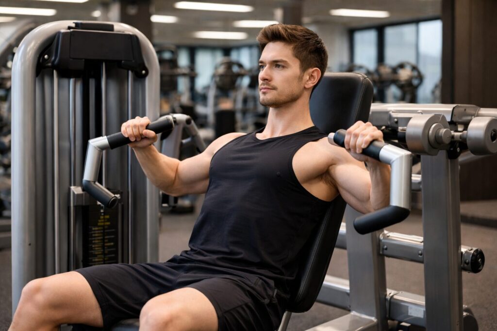チェストプレスは、胸や腕を鍛えるマシンです。