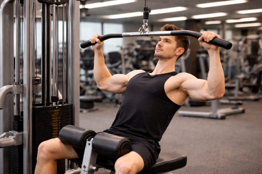 ラットプルダウンは、背中を鍛える代表的なマシンです。